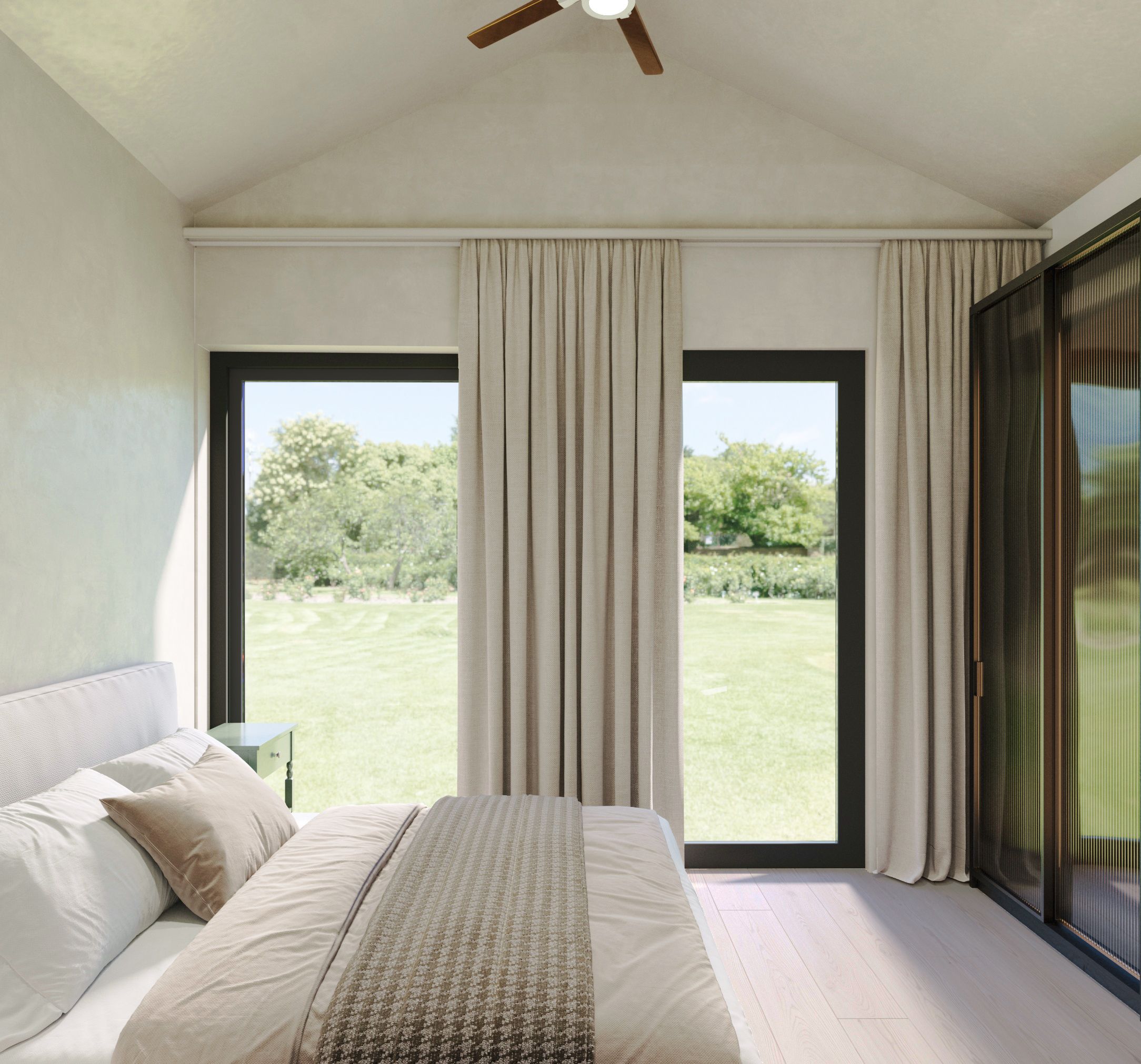 Listefri overgang mellom vegger og tak komplementerer husets moderne stil.