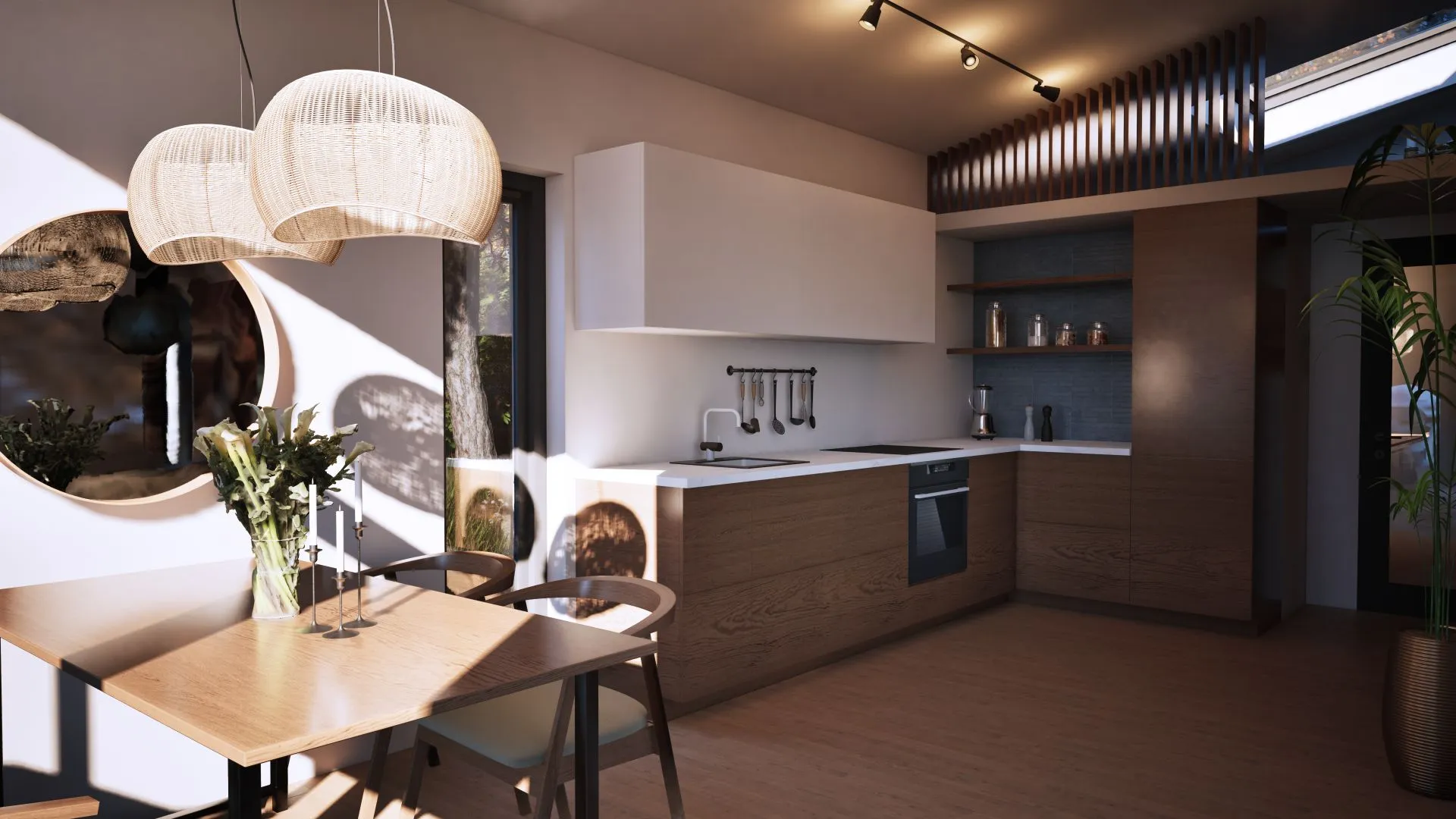 Kjøkkeninnredningen monteres i L-form for optimal arbeidsflate og oppbevaringsplass. Inkludert i leveransen er innredning fra Ikea til en verdi på kr 55 000,-. Her kan du få med både over- og underskap, benkeplate med nedfelt vask, samt integrerte hvitevarer i form av induksjonstopp, stekeovn, oppvaskmaskin, kjøleskap og ventilator med kullfilter. LED stripe under overskapene medfølger og. Alt over gitt sum er å anse som tilvalg.