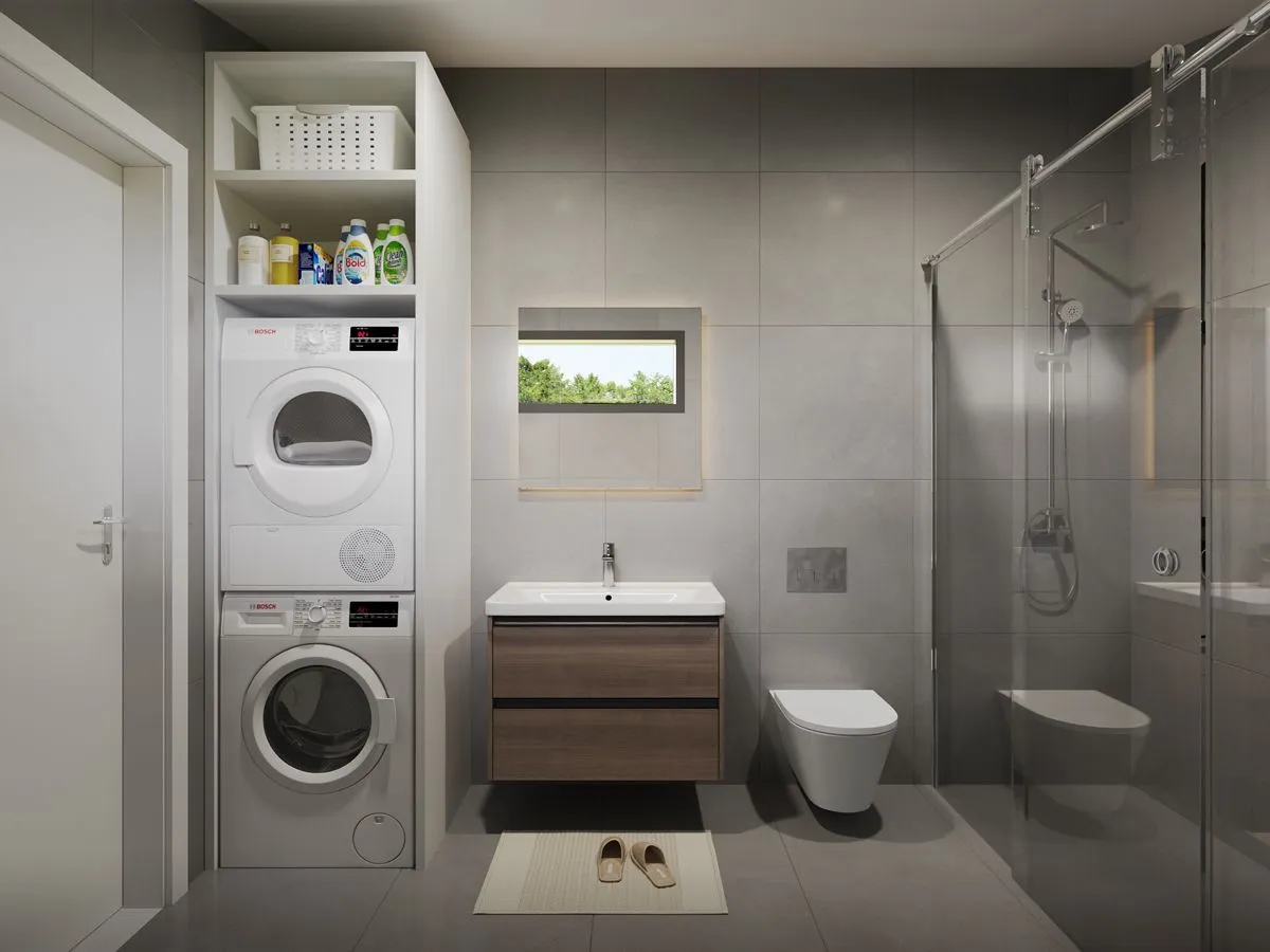 Boligen leveres med to bad som standard, begge med delikat og moderne uttrykk.